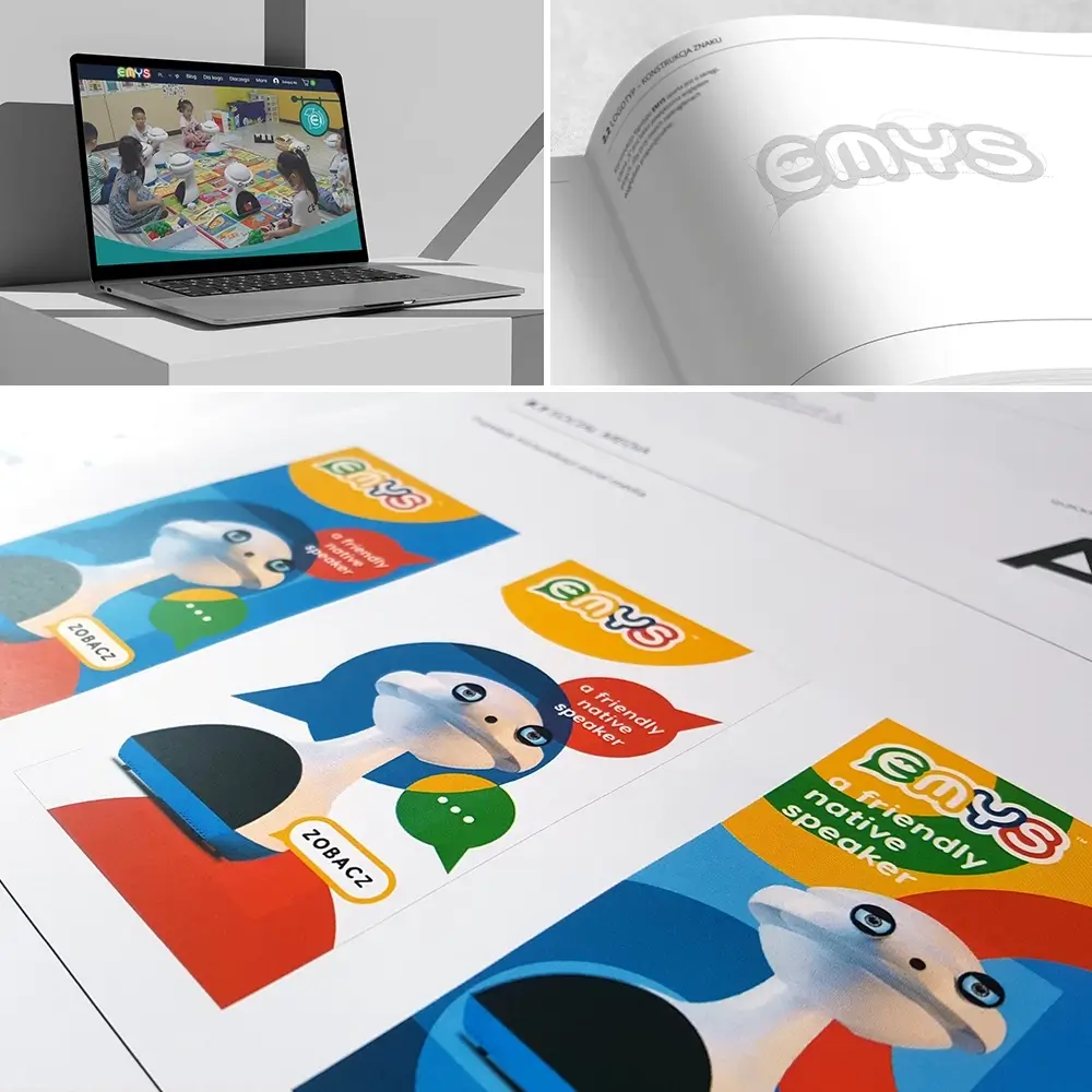 Na przykład, dla firmy Emys, stworzyliśmy dynamiczny Key Visual oparty na kolorach z ich logo, tworząc jednocześnie przyjazną postać, która stała się symbolem ich marki.